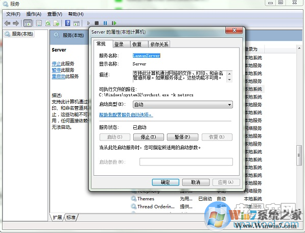 6、繼續(xù)在服務(wù)窗口里,找到server服務(wù),并將server服務(wù)啟動(dòng)類型設(shè)置為自動(dòng),如下圖