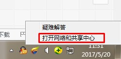 1、在屏幕右下角的任務欄窗口中找到網(wǎng)路連接圖標,然后右鍵點擊,選擇打開網(wǎng)絡和共享中心。
