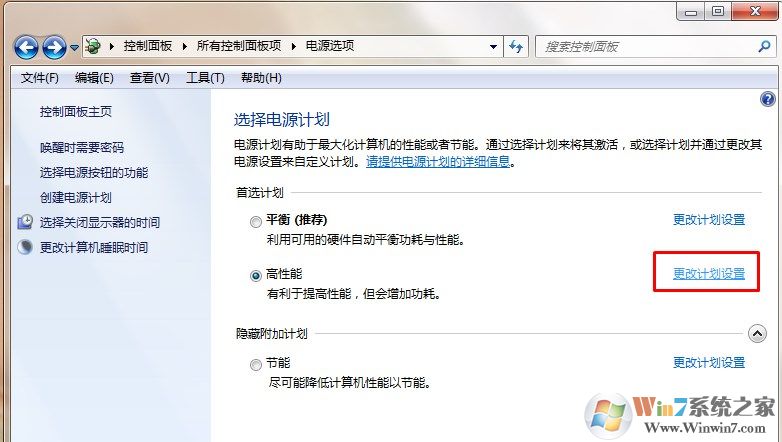 3、選擇當前的電源方案然后點擊更改設(shè)置