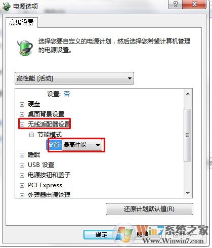 5、找到無線適配器設(shè)置,然后選擇最高性能
