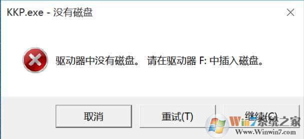 驅(qū)動器中沒有磁盤。請在驅(qū)動器F: 中插入磁盤。