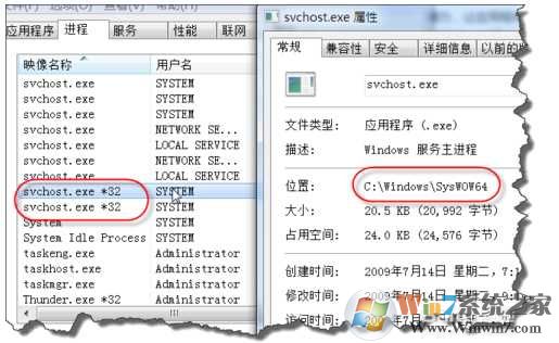 5、有的svchost.exe*32進(jìn)程你會發(fā)現(xiàn)在C:\Windows\SysWOW64,其實(shí)SysWow64文件夾,是64位Windows,用來存放32位Windows系統(tǒng)文件的地方。大家也可以放心。
