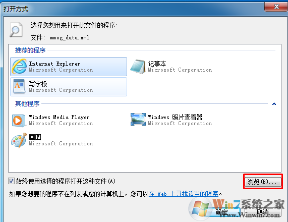 3、找到自己想要打開此文件的程序確定即可