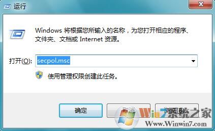 1、 按“Win+R”打開“運行”窗口,輸入“secpol.msc”命令后按回車,打開本地安全設(shè)置窗口。