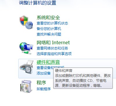 1、打開電腦,找到控制面板(就在開始菜單里面),找到“硬件與聲音”,打開它。