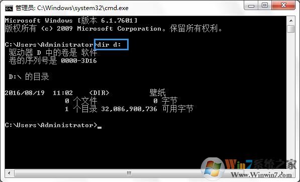 2、輸入“dir d:”可以查看到d盤中所有未隱藏的文件,如圖所示: