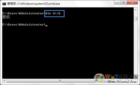 4、輸入“dir d:/b”則是查看d盤未隱藏文件和文件夾的名稱,如圖所示: