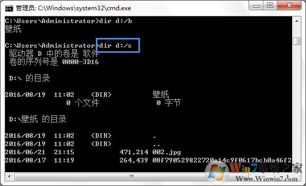 5、輸入“dir d:/s”查看d盤未隱藏的詳細文件,如圖所示: