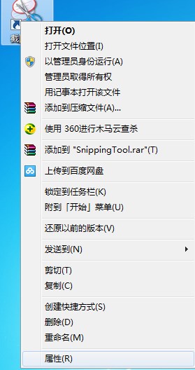 3、在桌面上“截圖工具”上單擊右鍵,選擇“屬性”;