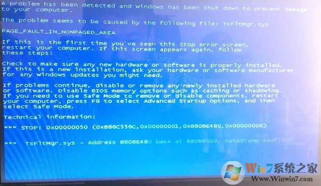 2、然后進入到PE系統(tǒng)將“C:windows\sytem32\drivers\Tsfltmgr.sys” 文件刪除掉重啟電腦一般就能解決!