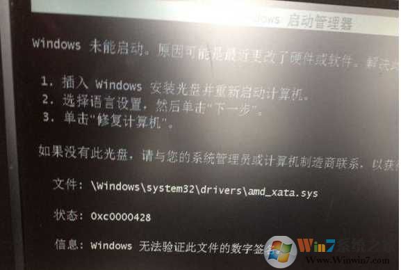 以上就是amd_xata.sys導(dǎo)致win7系統(tǒng)無法啟動(dòng)的解決方法,對(duì)于其他sys文件導(dǎo)致的win7無法啟動(dòng)情況也可以類似解決。