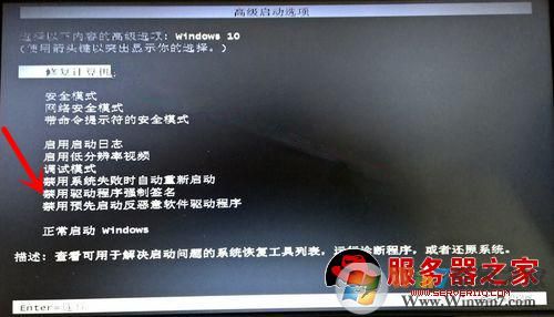 2、選中“禁用驅(qū)動(dòng)程序強(qiáng)制簽名”或“最近一次正確配置”選項(xiàng),點(diǎn)擊回車進(jìn)入系統(tǒng)。