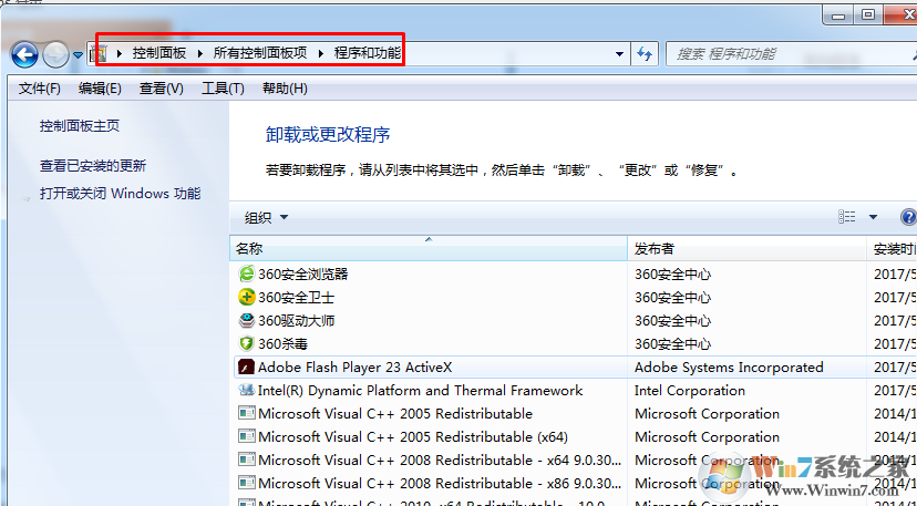 控制面板-程序和功能-選擇卸載即可。
