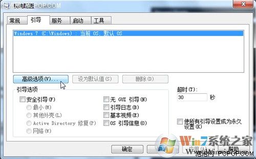 首先,打開Windows 7開始菜單在搜索程序框中輸入“msconfig”命令,打開系統(tǒng)配置窗口后找到“引導(dǎo)”選項(英文系統(tǒng)是Boot)。