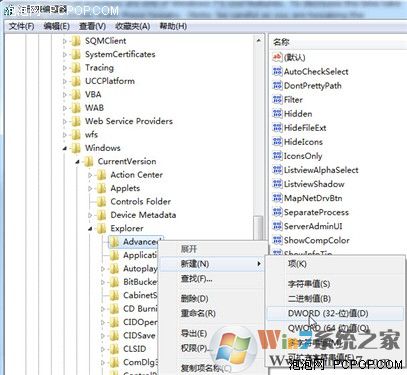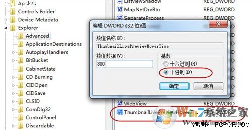 在Windows開始菜單中的搜索欄中輸入“regedit”打開注冊表編輯器,然后仔細找到HKEY_CURRENT_USER/Software/Microsoft/Windows/CurrentVersion/Explorer/Advanced文件夾,右鍵點擊該文件夾選擇“新建DWORD值”然后將其命名為“ThumbnailLivePreviewHoverTime”。