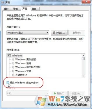 仔細想想系統(tǒng)提示音你真的需要嗎?我想對于大多數(shù)像小編一樣的辦公一族來說,上班時反正不能讓機器隨便出聲影響到其他人,還不如徹底將系統(tǒng)提示音關(guān)閉釋放點系統(tǒng)資源出來更實在。依然是在控制面板中去找到“聲音”選項打開,然后在聲音控制標(biāo)簽中去掉Windows 7系統(tǒng)默認勾選的“播放Windows啟動聲音”項即可。