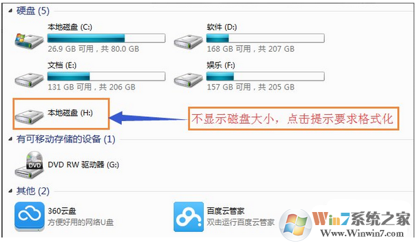 2、打開“我的電腦”查看,也不顯示磁盤容量大小。