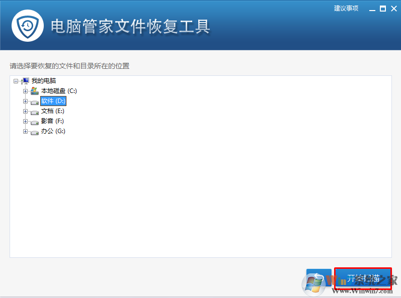 4、接著選擇誤刪除文件所在的”磁盤驅(qū)動器“, 比如“本地磁盤(c)”,最后點擊“開始掃描”按鈕進(jìn)行誤刪文件的掃描工作。