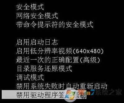 3、在打高級菜單中,選擇“禁用驅(qū)動程序簽名強(qiáng)制”按下回車,就可以進(jìn)入系統(tǒng)了;