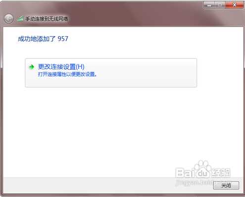 8.網(wǎng)絡(luò)名和密鑰設(shè)置完成后,win7系統(tǒng)無線網(wǎng)絡(luò)連接設(shè)置就完成了。此時我們查看打開系統(tǒng)托盤處的網(wǎng)絡(luò)圖標(biāo)就會發(fā)現(xiàn)網(wǎng)絡(luò)已經(jīng)連接,可以正常上網(wǎng)了。如圖七