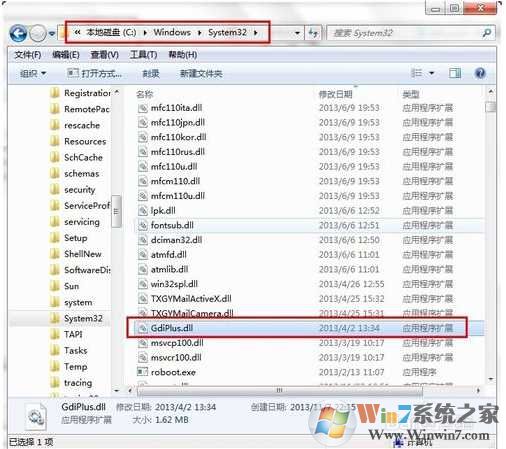 2、下載后,解壓,復(fù)制里邊的gdiplus.dll文件到系統(tǒng)目錄下,如下圖,是WIN7系統(tǒng)的存放位置,其他系統(tǒng)放在相應(yīng)位置即可(系統(tǒng)目錄一般為:C:\WINNT\System32 64位系統(tǒng)為C:\Windows\SysWOW64)