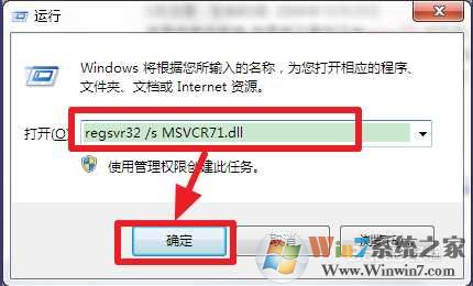 3、然后按【win+R】打開【運(yùn)行】,輸入【regsvr32 /s MSVCR71.dll】,然后【確定】即可