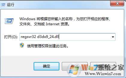二、然后打開“開始-運行-輸入regsvr32 d3dx9_24.dll”,回車即可解決錯誤提示。