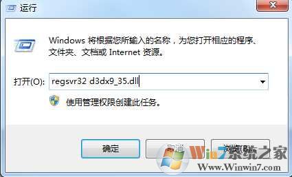 二、然后打開“開始-運行-輸入regsvr32 d3dx9_40.dll”,回車即可解決錯誤提示。
