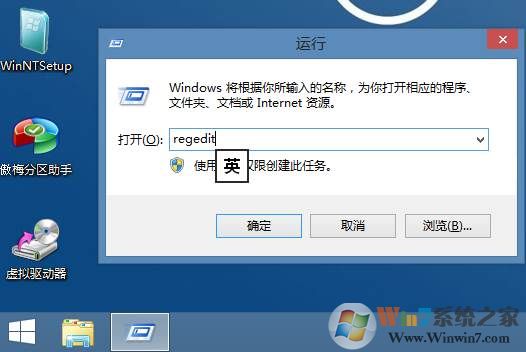 2、還是和系統(tǒng)里一樣WIN+R然后打開運行,輸入regedit回車打開注冊表編輯器
