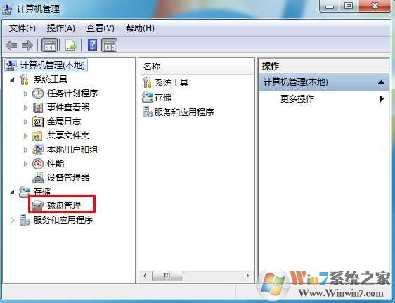 2、點(diǎn)擊磁盤(pán)管理;win7系統(tǒng)之家 m.cncxm.com
