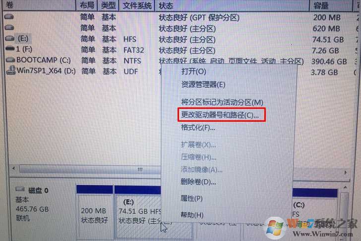 3、右鍵點(diǎn)擊要隱藏的磁盤(pán),然后選擇更改驅(qū)動(dòng)器號(hào)和路徑;