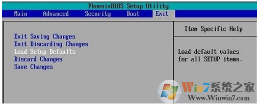 第二步:選擇【Exit】菜單下面的【Load Setup Defaults】并回車,選擇【Yes】之后,再次回車。一般出廠還原都在會后一欄里