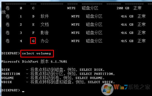 7、remove letter=x 刪除指定卷驅(qū)動號 (圖中G盤為要刪除盤符的EFI分區(qū))