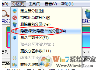 選中該分區(qū),然后點(diǎn)擊“分區(qū)”菜單,并選擇“隱藏/取消隱藏 當(dāng)前分區(qū)”項(xiàng)。