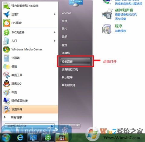 1.點擊計算機左下角開始菜單,找到控制面板,點擊打開