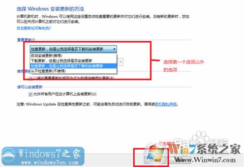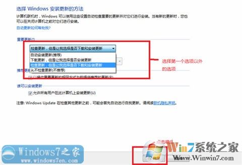 5.選擇下拉欄 選擇 除了“自動更新(推薦)”以外的其它選項,點擊確定