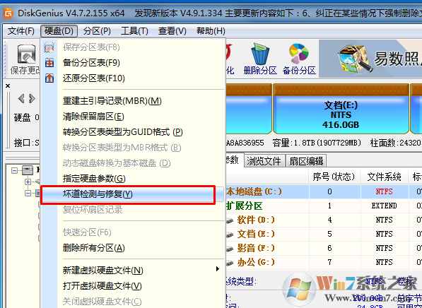 5、如果檢測出來壞道就抓緊送到維修點進行報修,如果已經(jīng)過報修了就嘗試使用一下軟件內(nèi)的壞道修復(fù)功能,不過修復(fù)過后需要重新安裝系統(tǒng)了,修復(fù)對系統(tǒng)會有損壞,詳情請參閱教程:發(fā)現(xiàn)磁盤壞道怎么辦?如何屏蔽磁盤壞道?