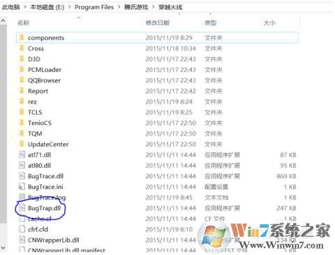 1、打開穿越火線安裝文件夾,路徑一般是X:\Program Files\騰訊游戲\穿越火線(X指你的穿越火線安裝盤符),然后找到里面的bugtrap.dll文件。 LOL的話也是一樣操作的。