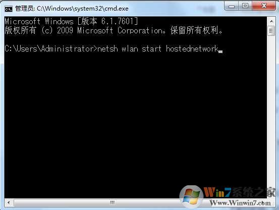 開啟無線網(wǎng)絡(luò),在命令提示符里輸入:netsh wlan start hostednetwork