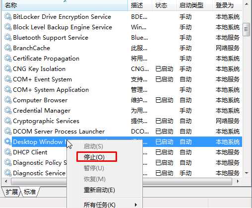 2、在服務(wù)框中找到Desktop Window Manager Session Manager,單擊右鍵;
