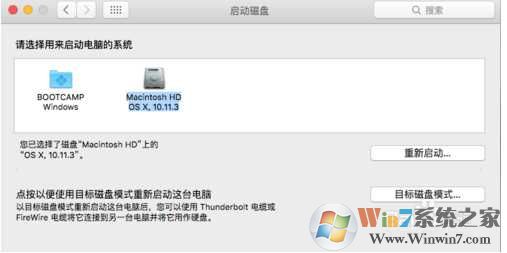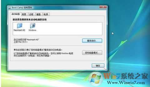 2、在BootCamp控制面板中,啟動磁盤界面選擇你要開機(jī)啟動的系統(tǒng)。