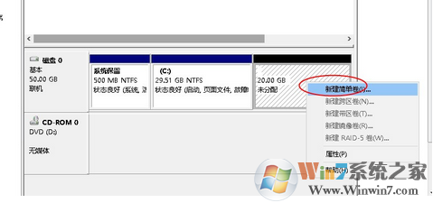 右鍵壓縮出來的空間,選擇新建簡(jiǎn)單卷,根據(jù)向?qū)б徊讲讲僮骷纯伞?br />
