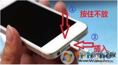 2、首先啟動你的電腦端iTunes,將USB數(shù)據(jù)線的一頭連接上電腦,按住Home鍵,然后將數(shù)據(jù)線另一頭插入手機,這個過程請不要松開Home鍵。