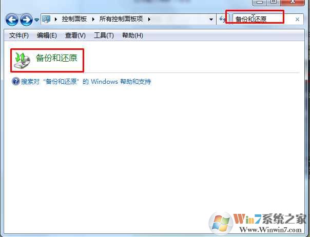 2、打開控制面板,然后搜索“備份和還原”如下圖;