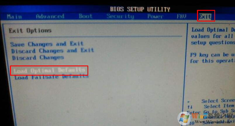 2、按鍵盤右方向鍵選擇到最后一項(xiàng),在里面找到Load Optimized Default這個(gè)選項(xiàng)然后回車鍵--按Y確定