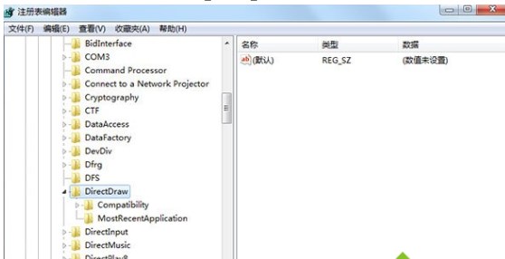 4、打開(kāi)注冊(cè)表編輯器,然后依次展開(kāi)HKEY_LOCAL_MACHINE\SOFTWARE\Microsoft\DirectDraw;
