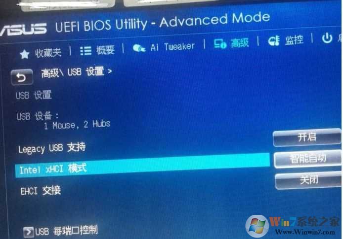 以華碩主板為例:進入到BIOS后,把intel xHCI模式設(shè)置為關(guān)閉即可。其他主板或筆記本可以以BIOS中找一下