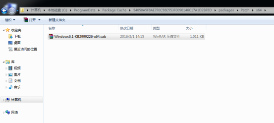 1.打開計(jì)算機(jī),搜索Windows6.1-KB2999226-x64.msu這個(gè)文件,打開所在的文件夾