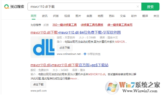 3.打開瀏覽器,搜索缺少的DLL,下載對應(yīng)版本的DLL