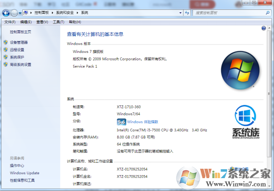 2.點(diǎn)擊系統(tǒng),查看計(jì)算機(jī)的操作系統(tǒng)信息